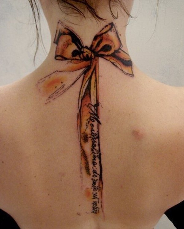 性感美女后背蝴蝶结纹身图案
