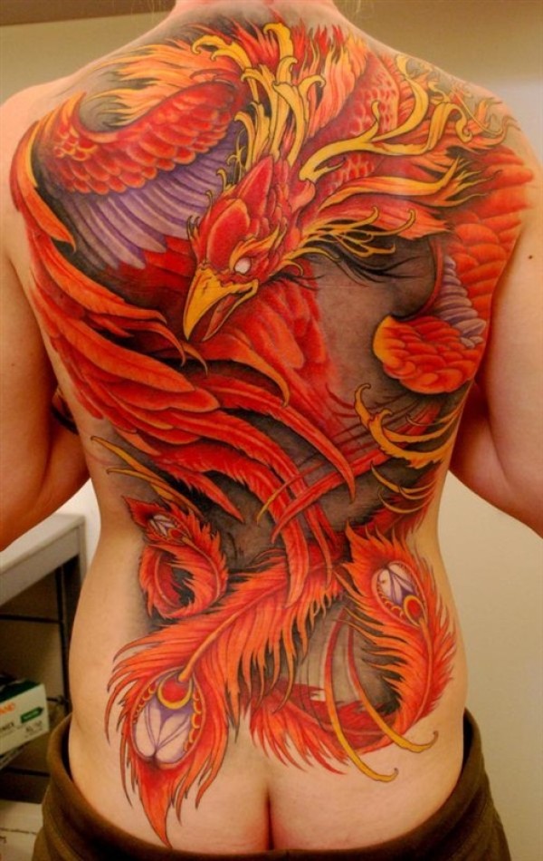 美女满背漂亮的火凤凰纹身