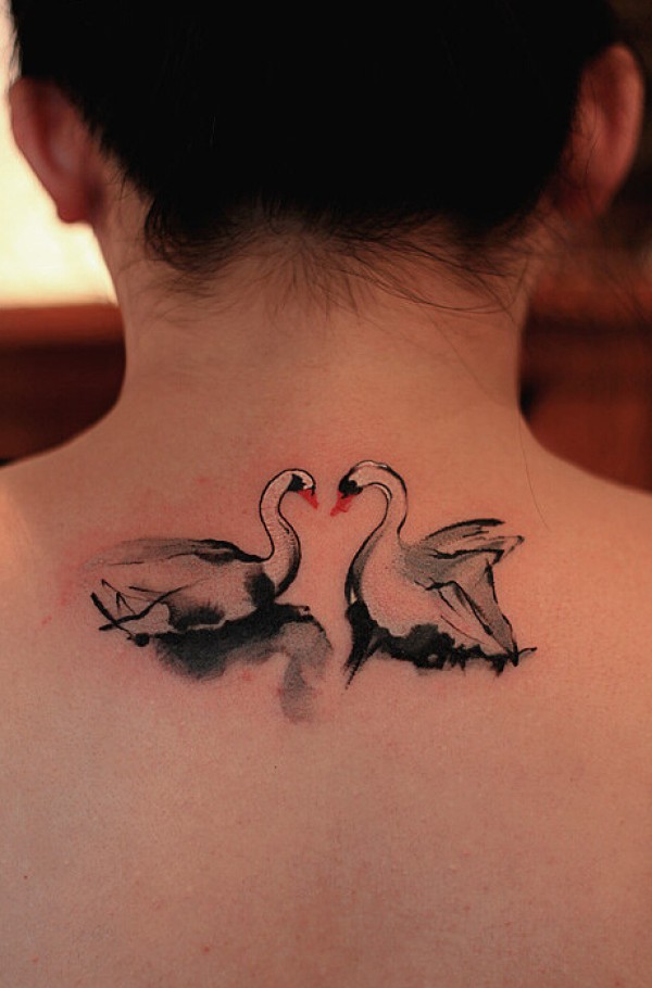 后颈部纹身小图--9张女生脖子后颈处的简约纹身图案
