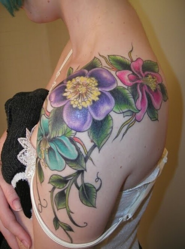 女生肩花纹身_15张女性双肩对称的肩花纹身图案作品图片
