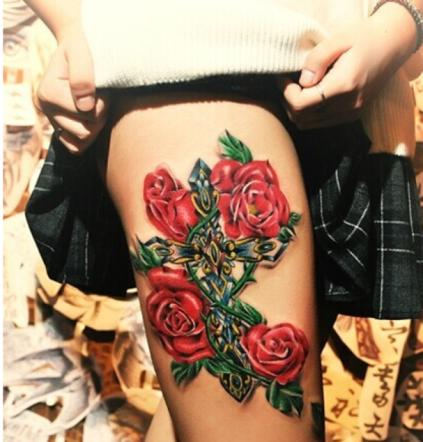 传统花腿纹身--18张传统风格的大花腿纹身图案作品