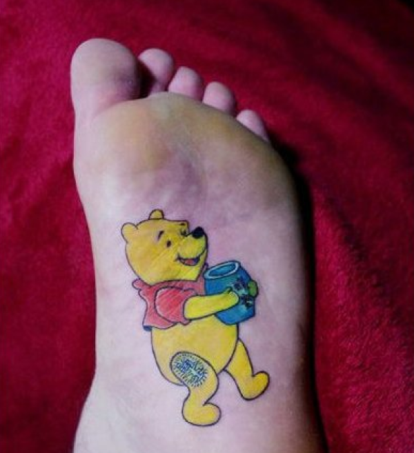 一款脚底卡通维尼熊纹身