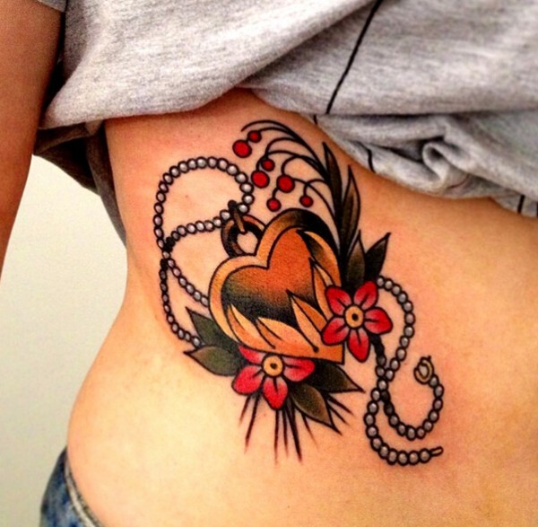 女生腹部心形花卉纹身