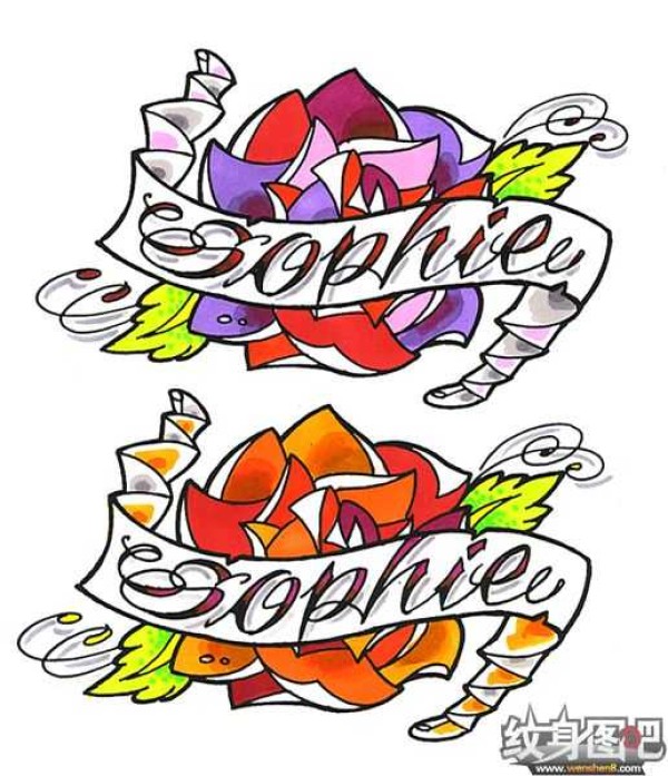 玫瑰花和条张纹身素材