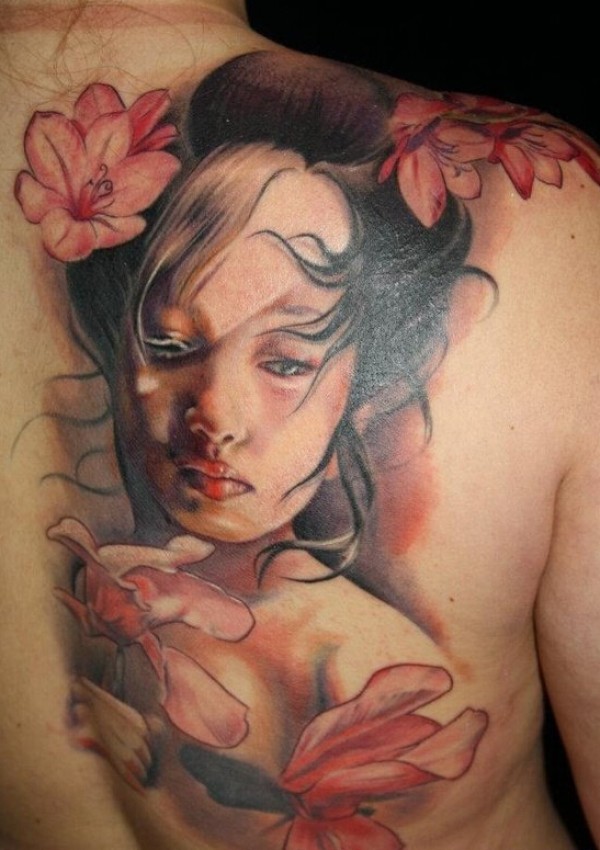性感女生满背创意文身作品