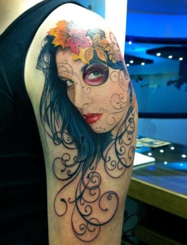 女性肩部肖像刺青_肖像纹身图案大全_纹身图吧