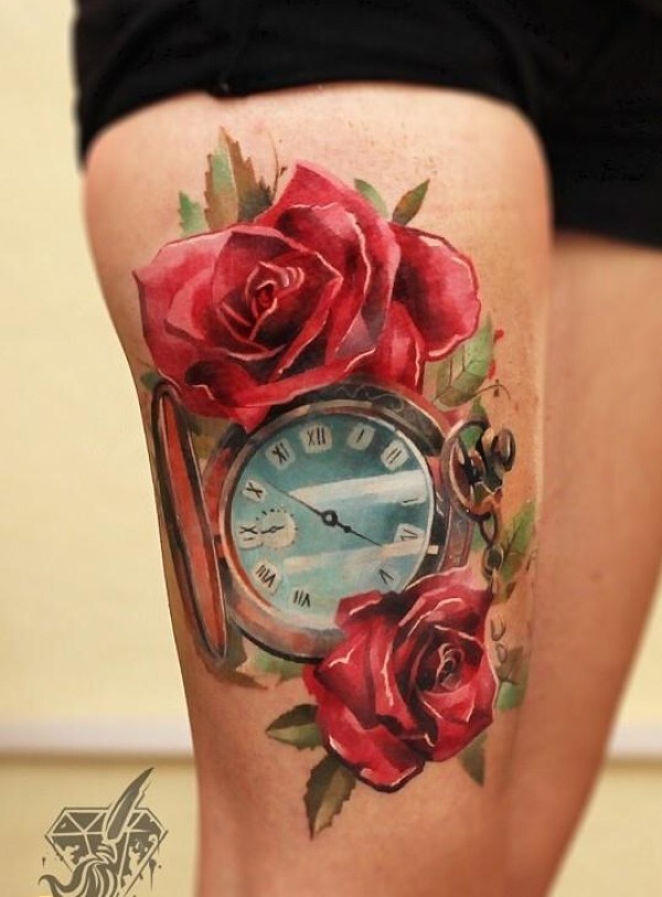 传统花腿纹身--18张传统风格的大花腿纹身图案作品