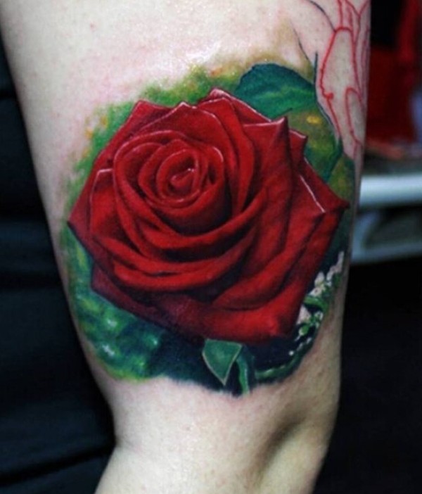 手臂上娇艳的玫瑰纹身