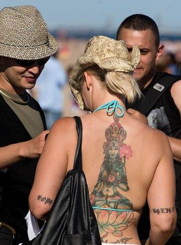 欧美女子背上湿婆神纹身