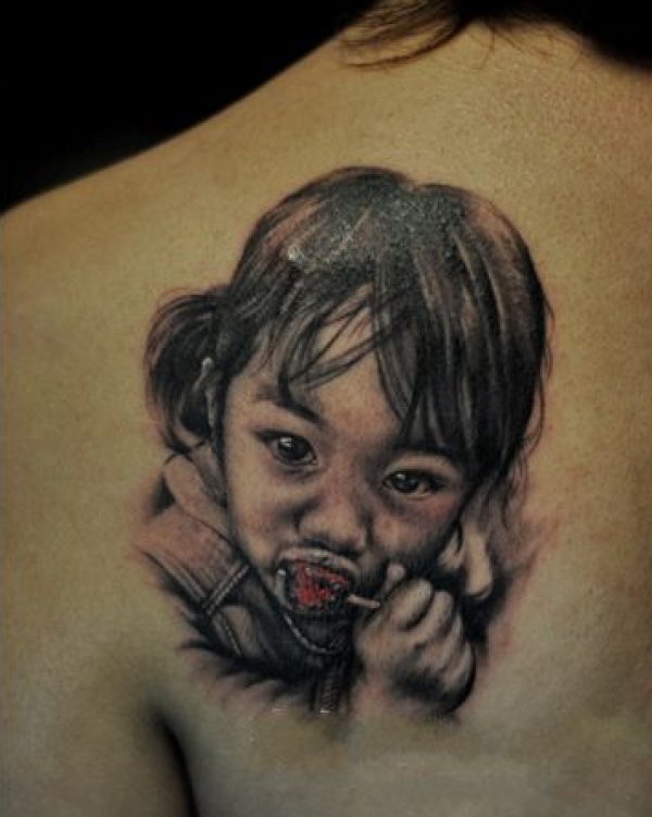 背部可爱的小女孩纹身