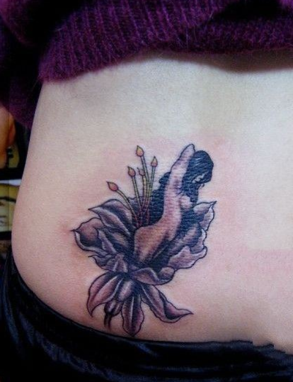 女性腰部莲花花纹刺青_腰部纹身图案大全_纹身图吧