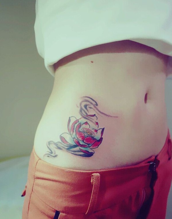 女性腰部莲花花纹刺青_腰部纹身图案大全_纹身图吧