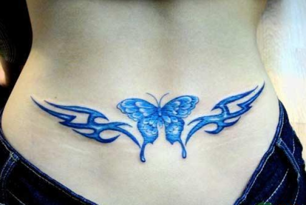 适合女子的蓝色蝴蝶纹身图案