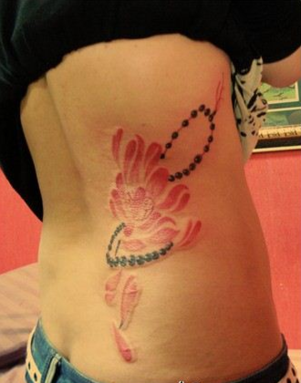 女性腰部莲花花纹刺青_腰部纹身图案大全_纹身图吧
