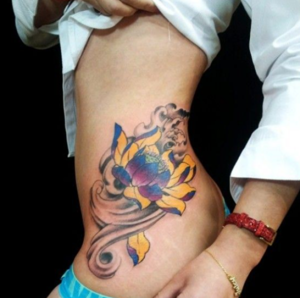 女性腰部莲花花纹刺青_腰部纹身图案大全_纹身图吧