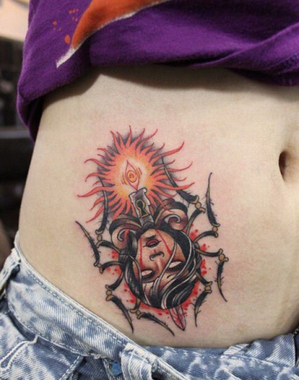 女生腹部个性创意头像纹身