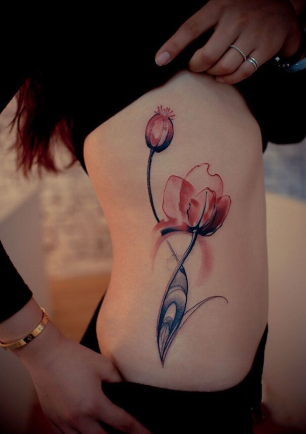 女性腰部莲花花纹刺青_腰部纹身图案大全_纹身图吧