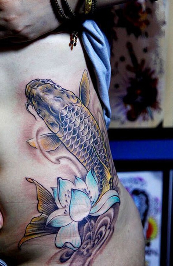 女性腰部莲花花纹刺青_腰部纹身图案大全_纹身图吧