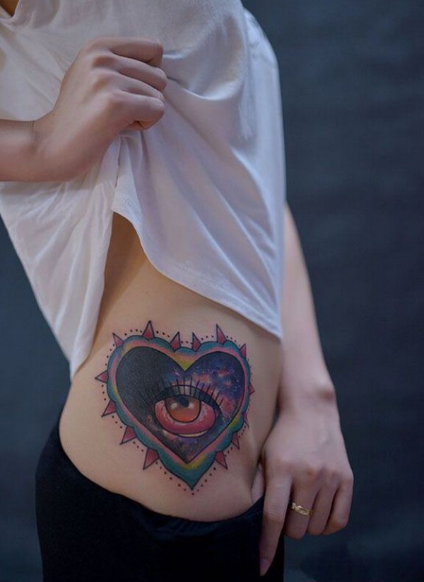 个性爱心眼睛腰部纹身图案