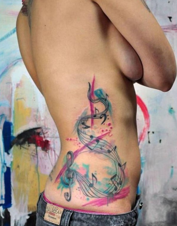 美女侧腰唯美时尚漂亮的音符纹身