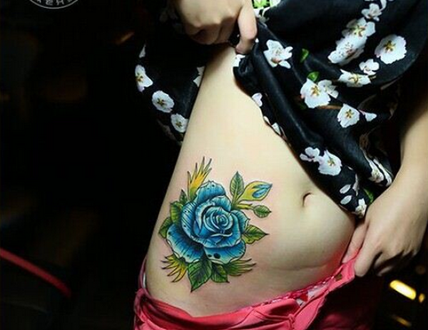 女性腰部莲花花纹刺青_腰部纹身图案大全_纹身图吧