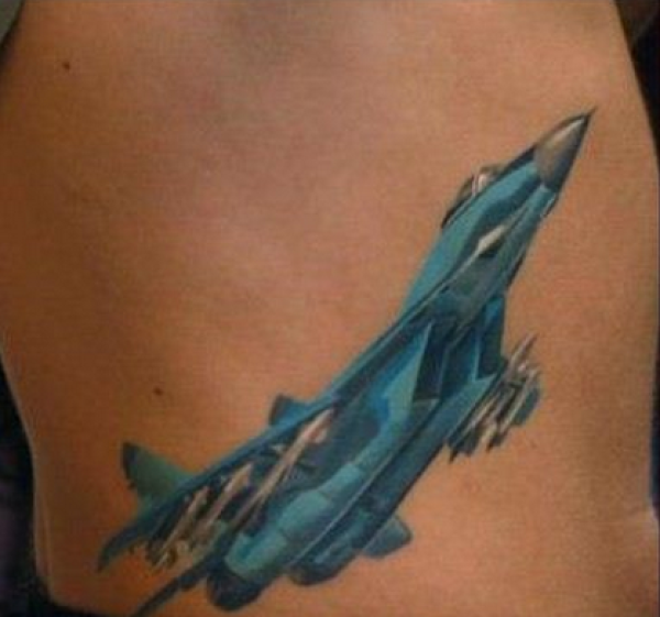 帅哥腰部起飞战斗机纹身图案