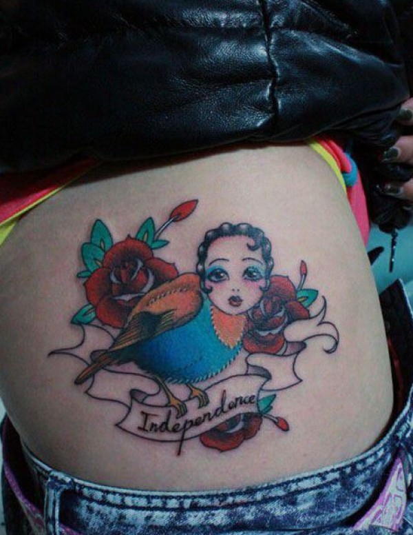 清纯女孩腿上可爱肖像纹身图片_肖像纹身图案大全_纹身图吧