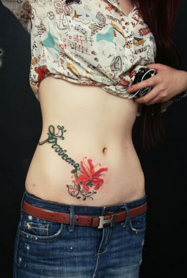 女性腰部莲花花纹刺青_腰部纹身图案大全_纹身图吧