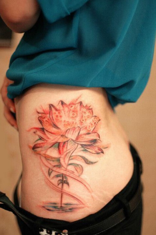 女性腰部莲花花纹刺青_腰部纹身图案大全_纹身图吧