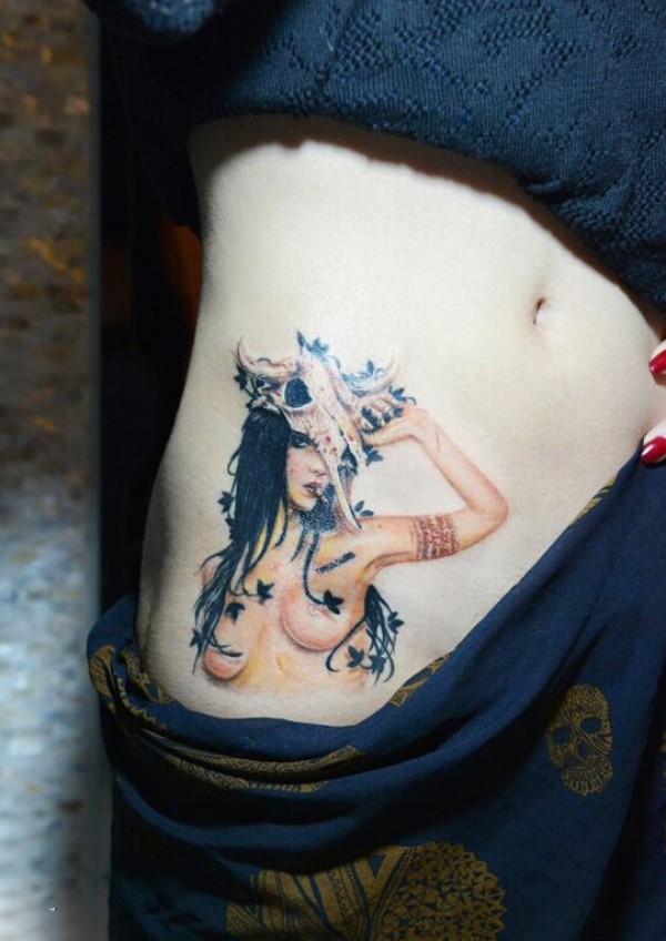 女生人物纹身图案 女生小腿上女生人物纹身图案