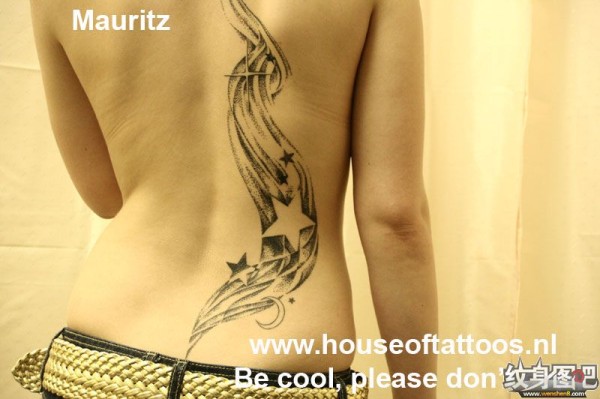 女生后腰纹身黑白灰风格抽象线条纹身图案