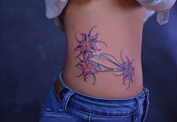 分享一款腰部时尚性感的蝶恋花纹身图案_腰部纹身图案大全_纹身图吧