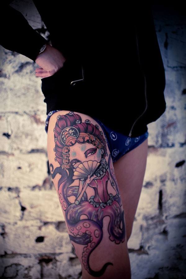 传统花腿纹身--18张传统风格的大花腿纹身图案作品