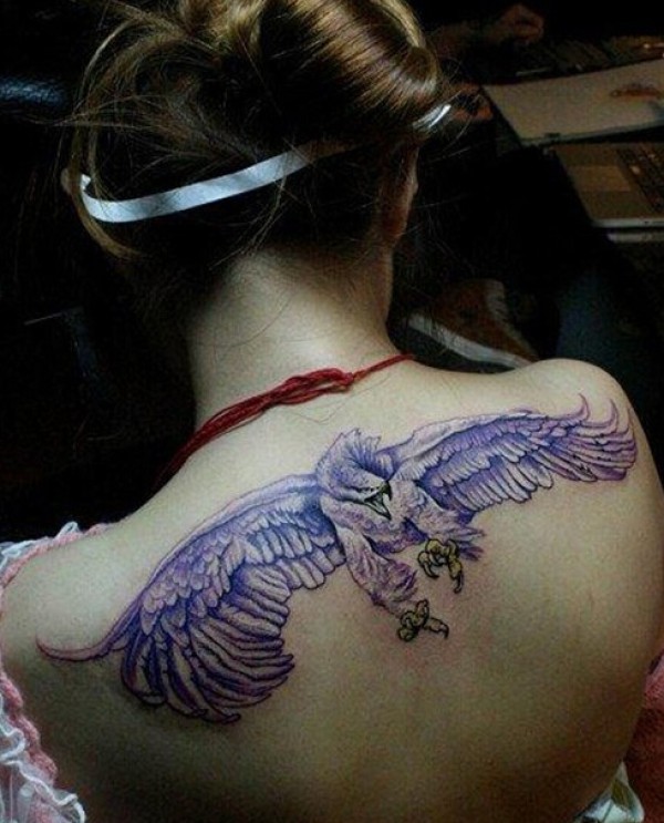 美女背部经典鹰雕纹身