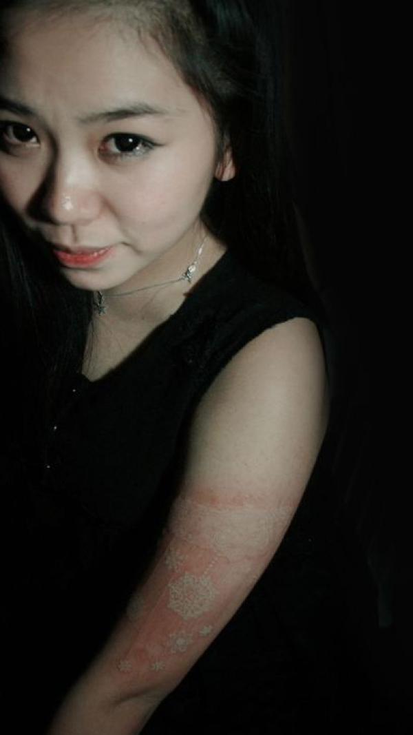 美女个性的臂环隐形纹身