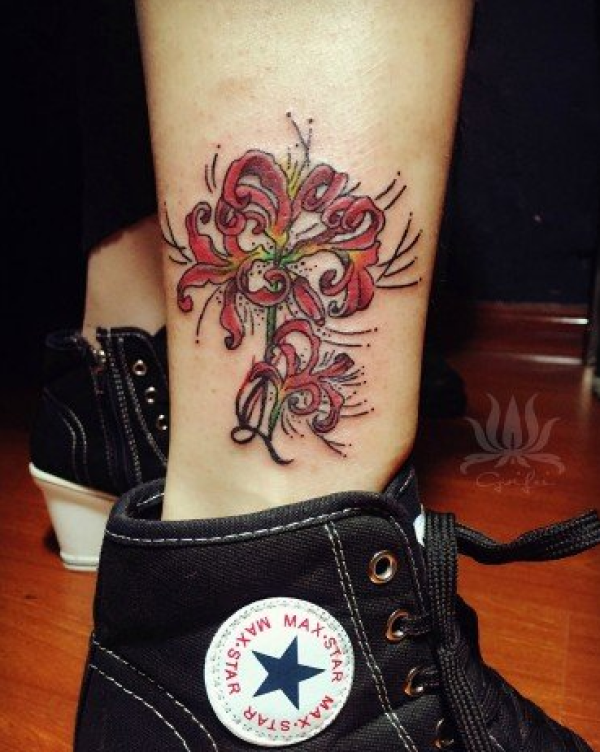 传统鲤鱼花小腿纹身_腿部纹身图案大全_纹身图吧