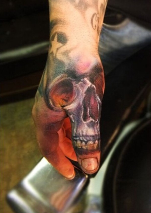 色彩艳丽邪恶骷髅头纹身图案