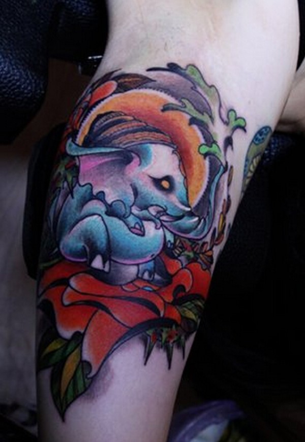 小腿上一款大象纹身图案_腿部纹身图案大全_纹身图吧