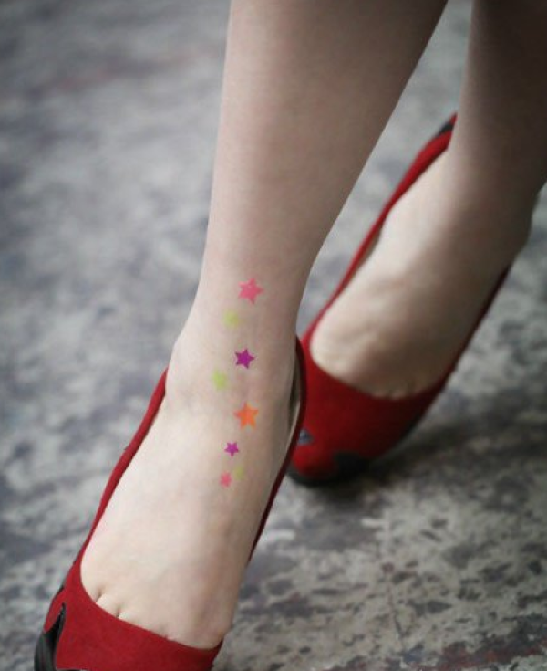 女生脚部好看的彩色五角星纹身图案