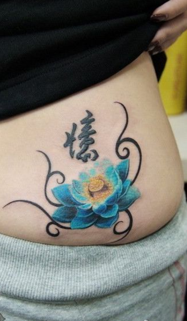 女性腰部莲花花纹刺青_腰部纹身图案大全_纹身图吧