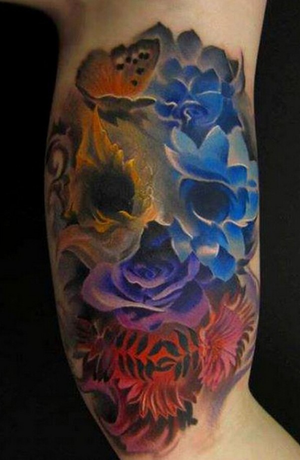 清新花朵腿部纹身图案图片_植物纹身图案大全_纹身图吧