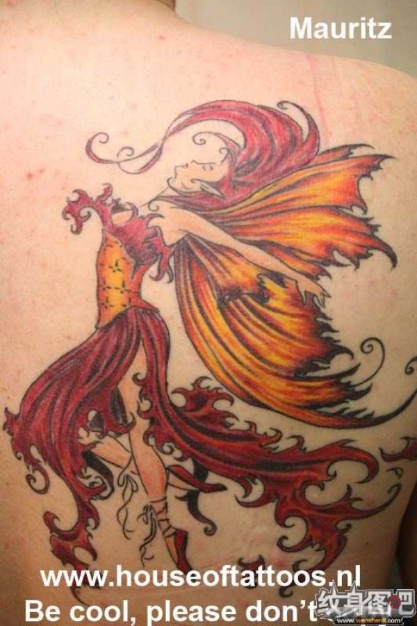 女生肩花纹身_15张女性双肩对称的肩花纹身图案作品图片