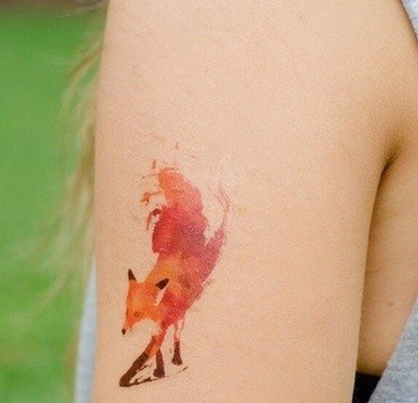 美女手臂彩色狐狸纹身图案