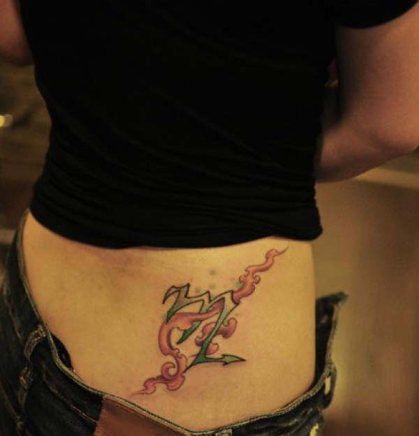 美女腰部精美漂亮的星座与火焰纹身图案