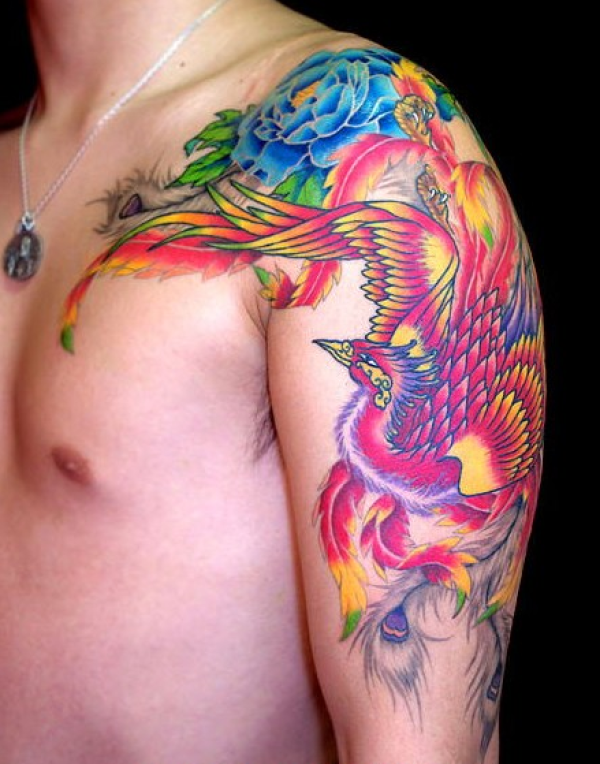 男士凤凰牡丹纹身图片