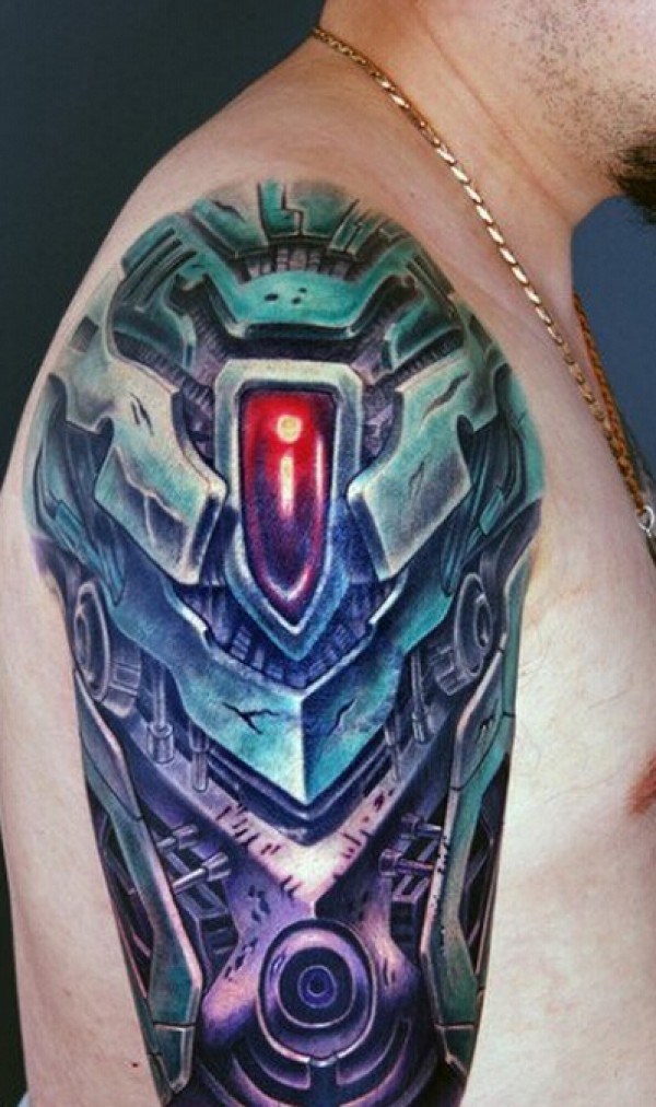 手臂彩色3D机械纹身图案