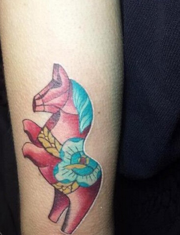 手臂彩色木马纹身图案