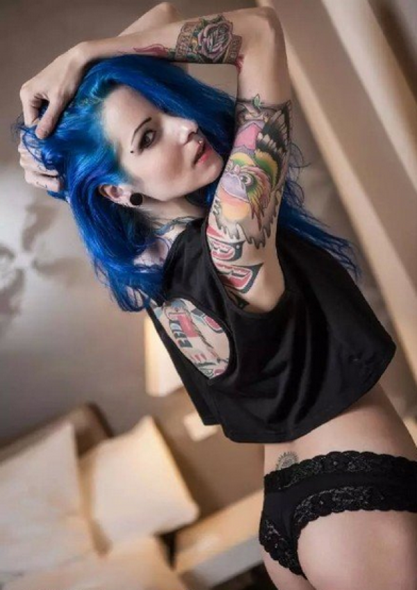 性感火辣女郎的花臂纹身图案