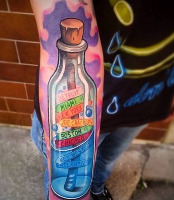 手臂一款彩色蘑菇纹身图案_臂部纹身图案大全_纹身图吧