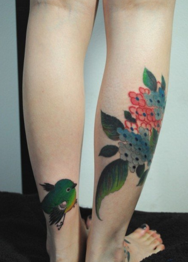 日式风格的传统花腿纹身作品欣赏